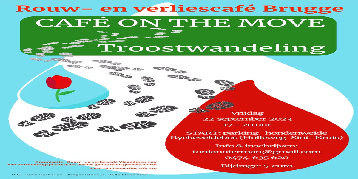 Ondanks de regen was de eerste editie van 'Café on the move' in Brugge een schot in de roos. Wandelen, stilstaan bij wat er in ons omgaat, ont-moeten, verdriet en zorgen delen maar ook onze pogingen om desondanks alles verder te doen, troost zoeken in wat de natuur ons kan vertellen... het was deugddoend en hartverwarmend! De vraag werd gesteld naar méér van dit... wordt vervolgd dus!