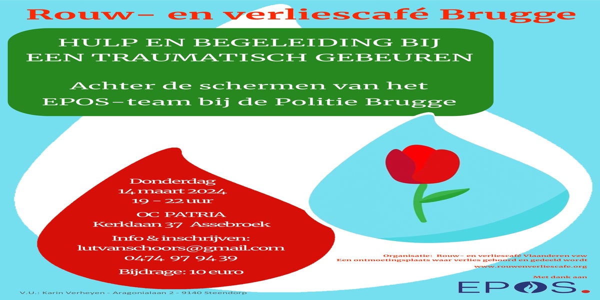 Wat een fijne avond was het gisteren weer bij Rouw- en verliescafé Brugge! Bert en Jolien van het EPOS-team (Politie Brugge), vertelden met veel bezieling over hun ervaringen als eerstelijns helpers bij traumatische verliezen zoals ongeval en zelfdoding. We waren allemaal onder de indruk en dankbaar voor dit te weinig gekende politiewerk. Wat we als slot meekregen is iets om zeker te onthouden: "Je bent nooit alleen, wij zijn er om te helpen".